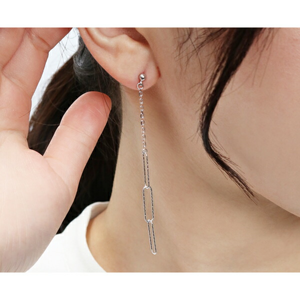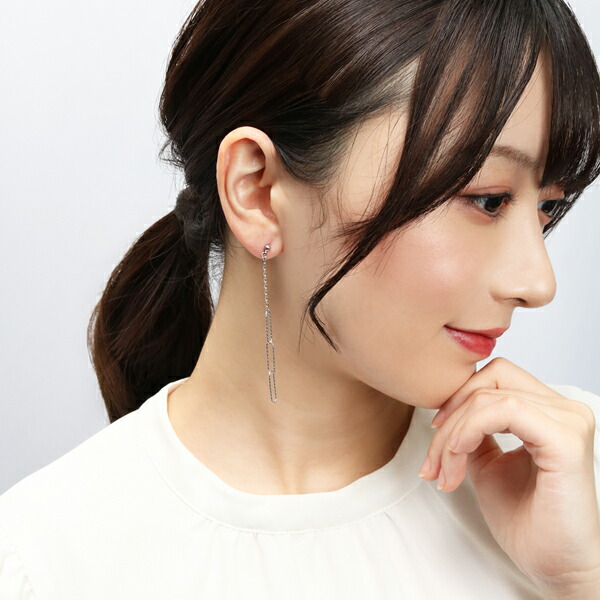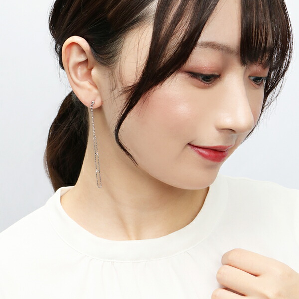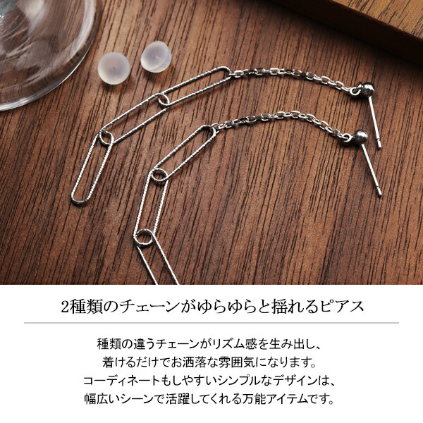 2種類のチェーンがゆらゆらと揺れるピアス。