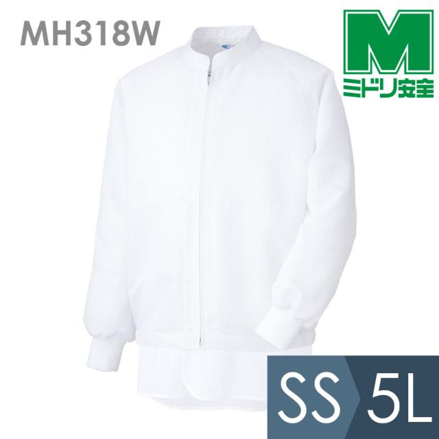 ミドリ安全 食品産業向け作業服 通年 白衣 男女共用 長袖ブルゾン MH318W上 ホワイト SS〜5L