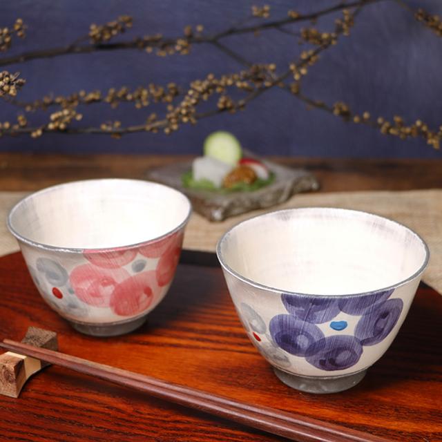| 商品名 | 信楽焼 花花(ブルー・ピンク) 飯碗ペアセット |