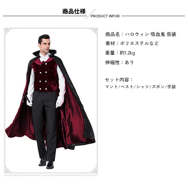 ハロウィン 仮装 メンズ 吸血鬼 コスチューム 大人用 衣装 コスプレ衣装 コスチューム ヴァンパイア ハロウィン衣装 男性 Halloween Cosplay 演出 舞台 イベント 5点セット お化け屋敷 余興 パーティー aa154jcjczr