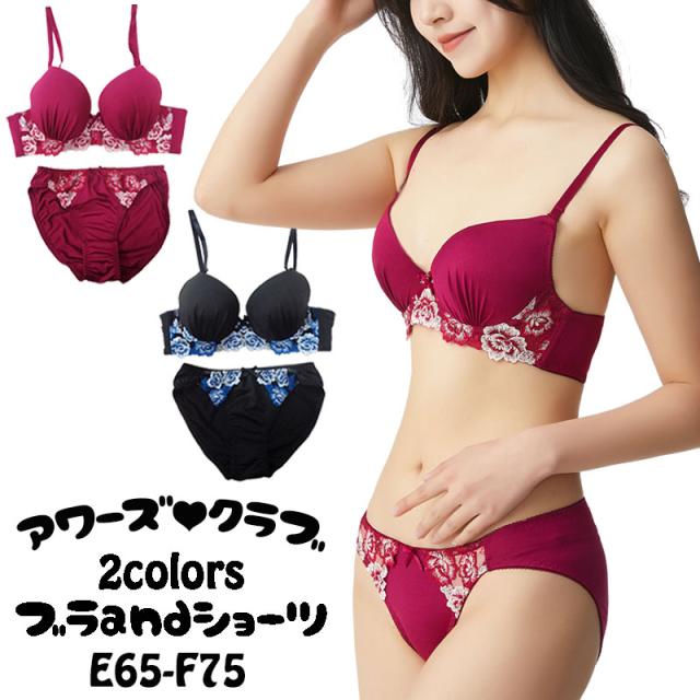 大きいサイズ ブラショーツセット ブラ ブラジャー ブラショーツ ショーツ セット ブラ&ショーツ ブラセット ブラジャーショーツセット E65 E70 F65 F70 F75 ランジェリー バラ柄 レース 刺繍 下着 女性 上下 上下セット 女性下着 レディース 女性 メール便送料無料