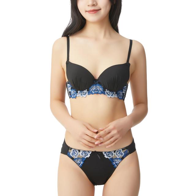 花柄刺繍のエレガントなブラジャー&ショーツ