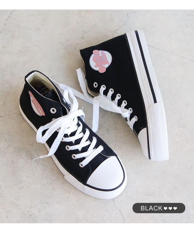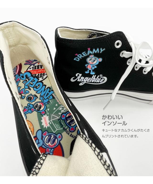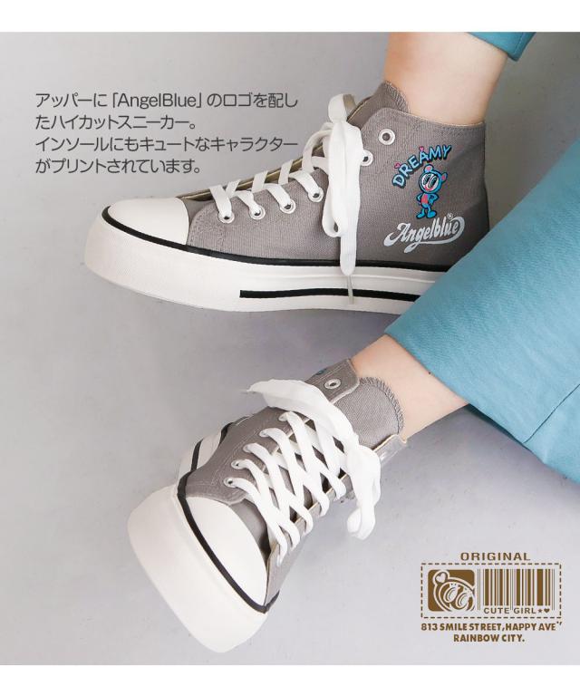 AngelBlue エンジェルブルー レディース スニーカー ハイカット キャンバス ハイカットスニーカー 軽い 軽量 学校 通学 履きやすい 脱ぎやすい 滑りにくい ブラック 黒 グレー ピンク ナカムラくん 830