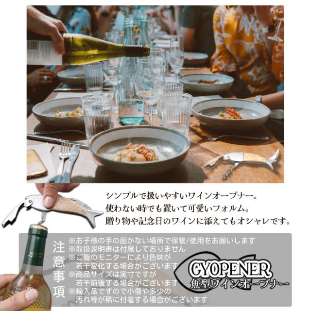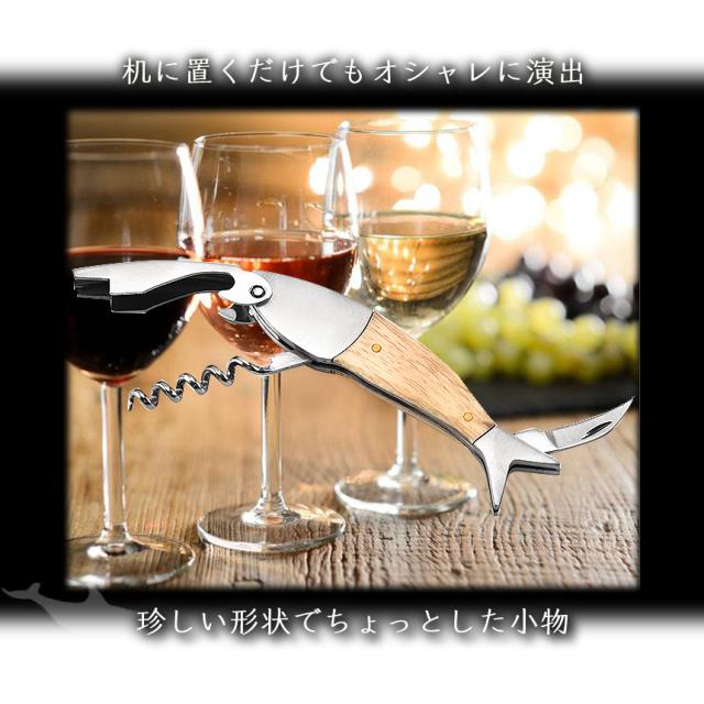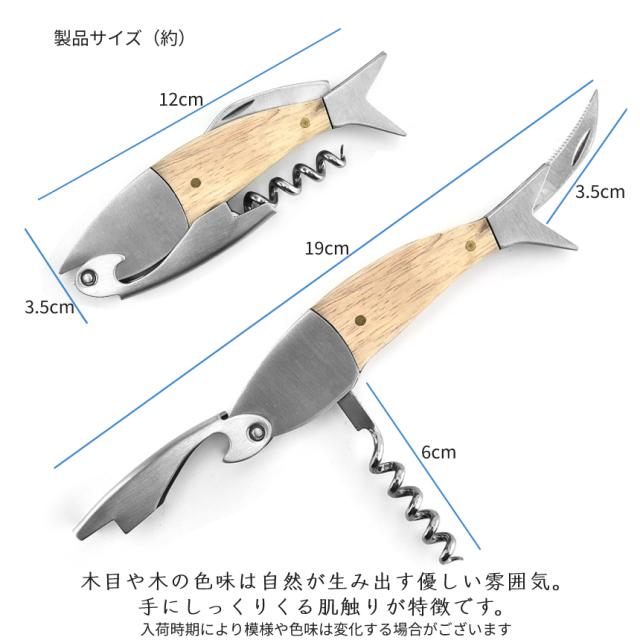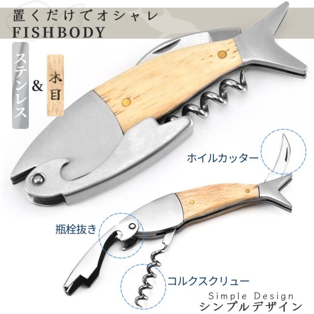 ワインオープナー コルク抜き 魚型 ソムリエナイフ 栓抜き ワイン 瓶 ビール 栓抜 オープナー コルクスクリュー ホイルカッター 木製 ハンドル 携帯 アウトドア 贈り物 プレゼント ギフト GYOPENER 送料無料