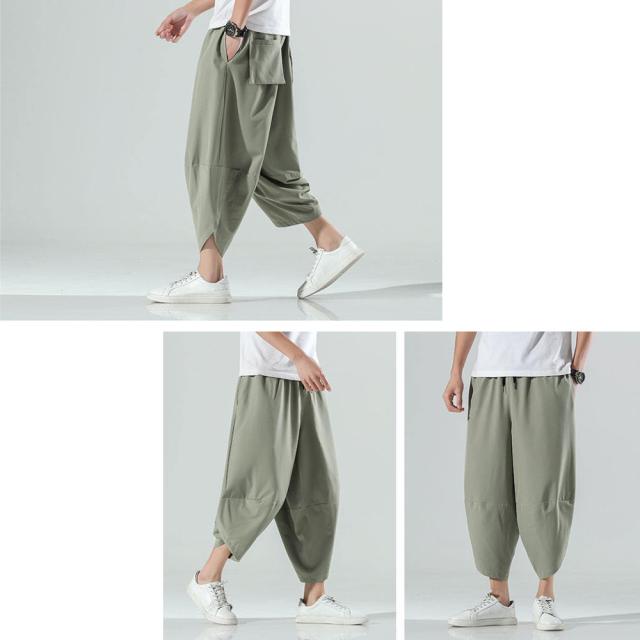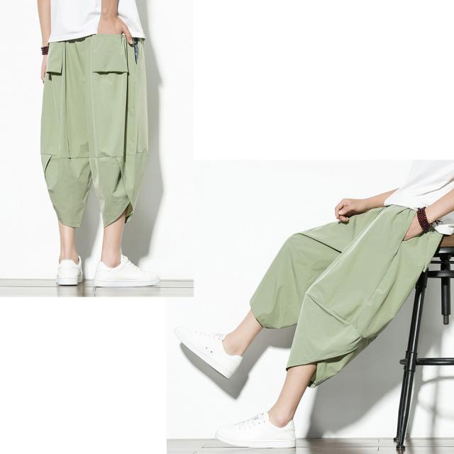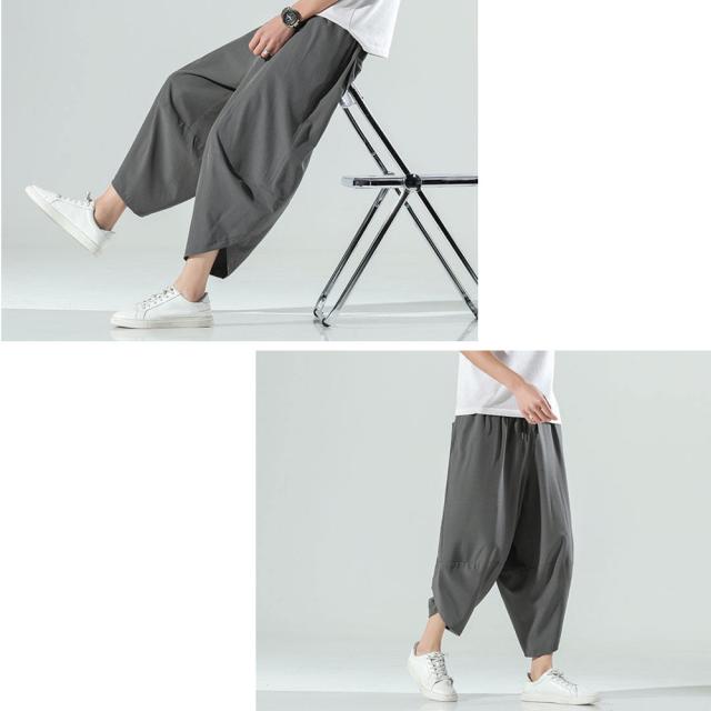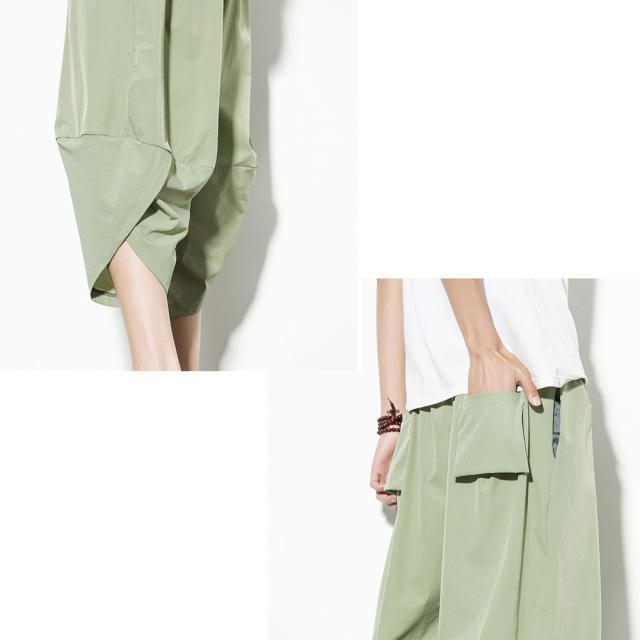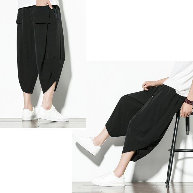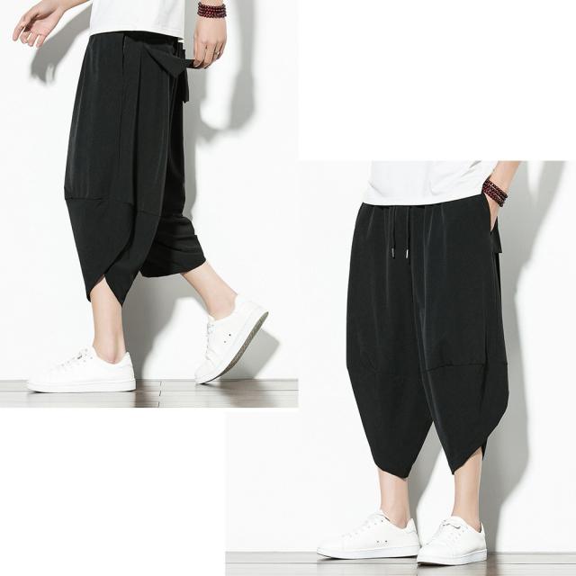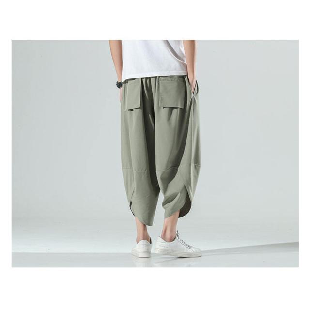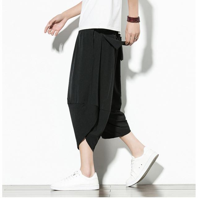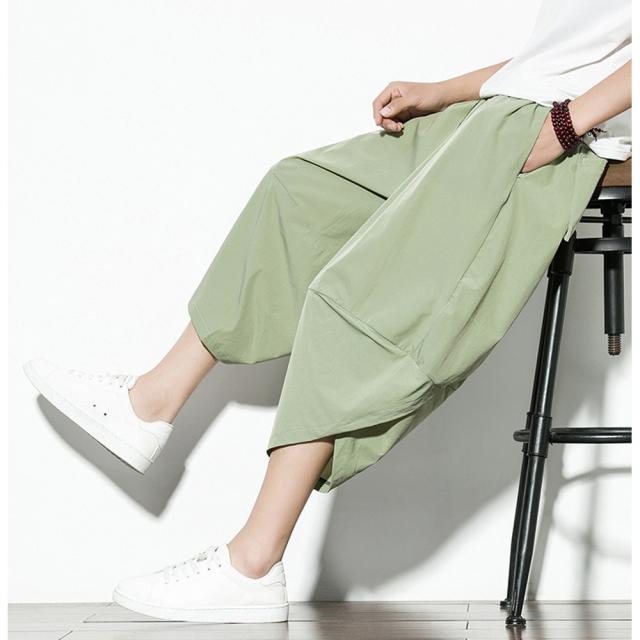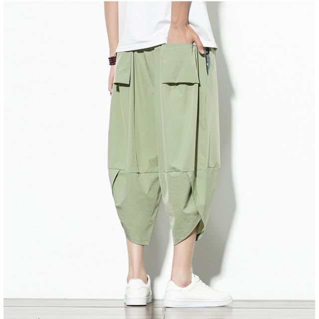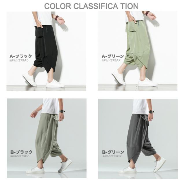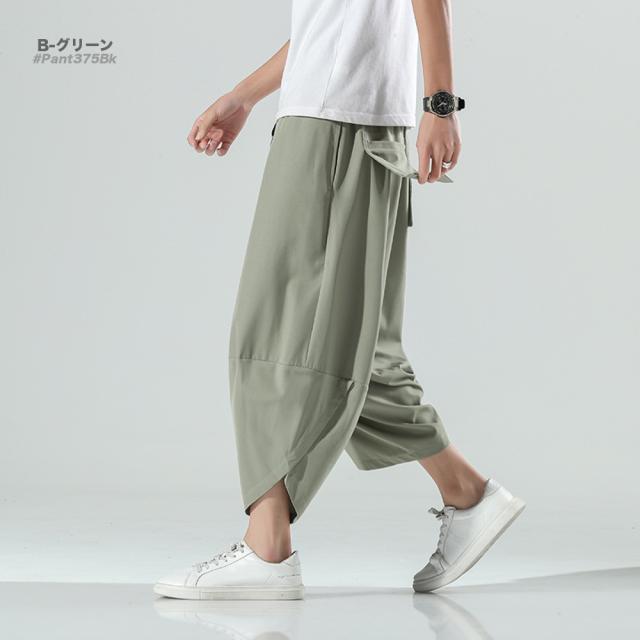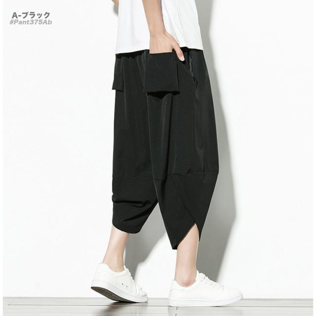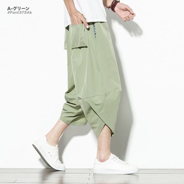 クロップド 無地 サルエルパンツ メンズ 9分丈 7分丈 カジュアル ガウチョ ワイドパンツ ズボン ボトムス #Pant375 M便