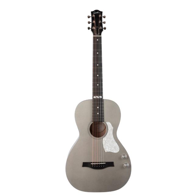 コンパクトで人気のクラシックなパーラーギターシェイプにパールピックガード、リッチライト指板、エボニーブリッジ、12フレットのメトロポリス・インレイ、などモダンな魅力を追加。サティナグレイカラーがソリッドでクールな印象を引き立てています。