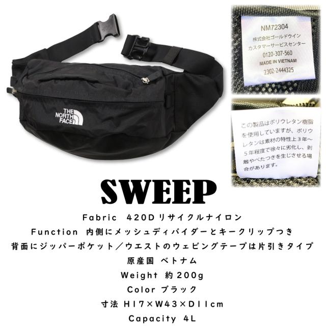THE NORTH FACE ザ・ノース・フェイス スウィープ Sweep NM72304 中型ウエストバッグ ボディバッグ 正規店 アウトドア 4リッター容量 片引きタイプ K ブラック