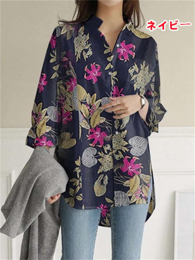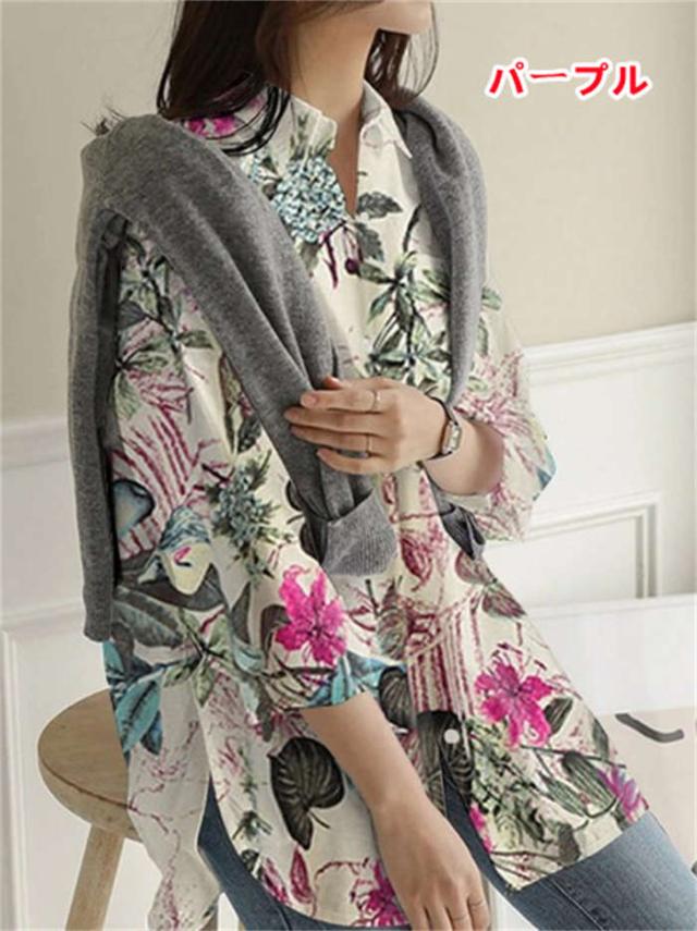 商品名:シャツ レディース アロハシャツ 大きいサイズ アロハシャツ 総柄 シャツ 長袖 カジュアルシャツ ハワイ ハワイシャツ リゾート アロハ 花柄シャツ 開襟シャツ おしゃれ トップス サマーウエア 夏 夏服 総柄 ファッション ゆったり ギフト 送料無料