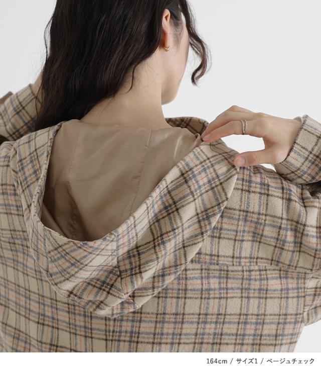 23日最大1200円クーポン 【感謝価格】『スタンドフードロングダッフルコート』 【メール便不可】【60】[ロングコート レディース アウター 秋冬 長袖 ドロップショルダー チェック柄 無地 シンプル フード付き ベーシック 定番 oks0131]