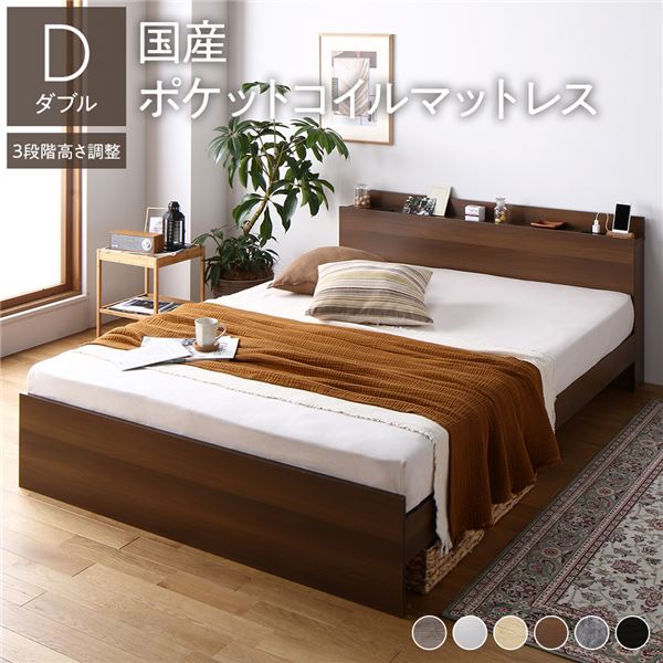 ダブルベッド 茶色 ブラウン 茶 ベッド 国産 日本製 国産ポケットコイルマットレス付 レギュラー 茶色 ブラウン 茶 高さ調整可 宮付 すのこ 送料無料