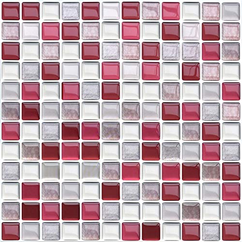 VANCORE 4枚 モザイクタイルシール キッチン リメイクシート タイルステッカー リフォーム 3D防水 はがせる壁紙 レッド