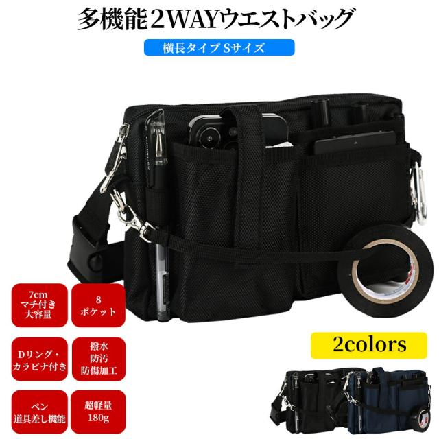 多機能 2WAYウエストポーチ ナースポーチ ウエストバッグ ウエストポーチ マチ7cm(3.5+3.5) 横長タイプ ダブルジッパー 8ポケット ショルダーベルト付き ポシェット 腰バッグ ペン スマホ 手帳 文具 工具 道具入れ 収納 業務用 作業用 仕事用 事務 看護 介護 撥水 防傷加工