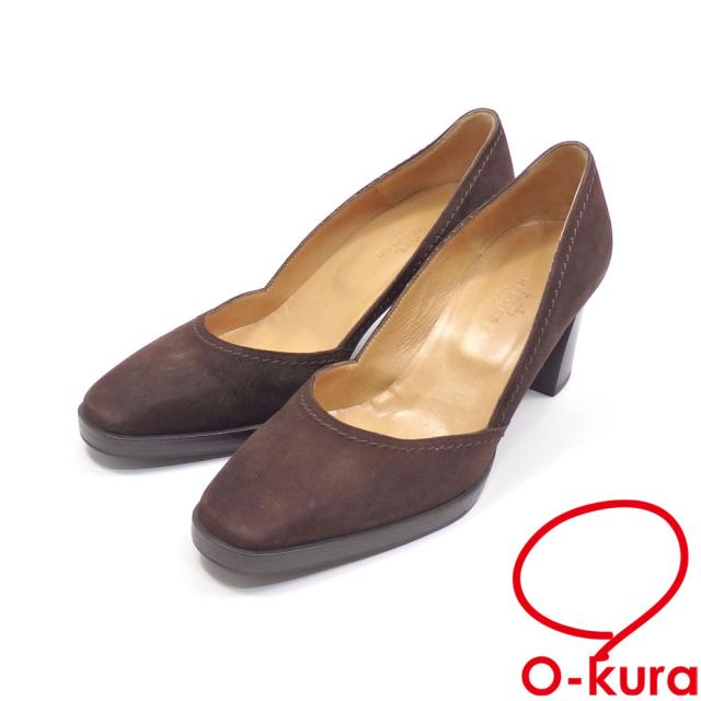 中古 エルメス パンプス レディース スクエアトゥ スエード ブラウン 茶色 22.5cm 35 1/2 ヒール 古着 アパレル