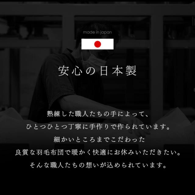 ※羽毛は天然素材のため、無臭ではございません。開梱直後や温度・湿度等の環境等により臭いを感じる場合がございますので、開封直後には風通しの良い場所での十分な陰干し等をお勧めいたします。なお、天然羽毛の臭いのため人体に害はございませんのでご安心ください。
