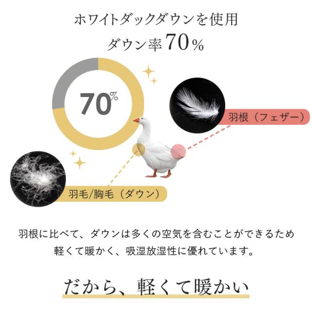 詰め物:ホワイトダックダウン(ダウン70%、フェザー30%)