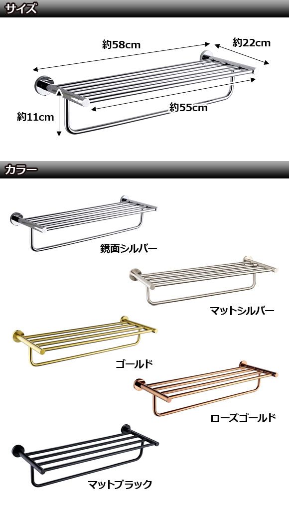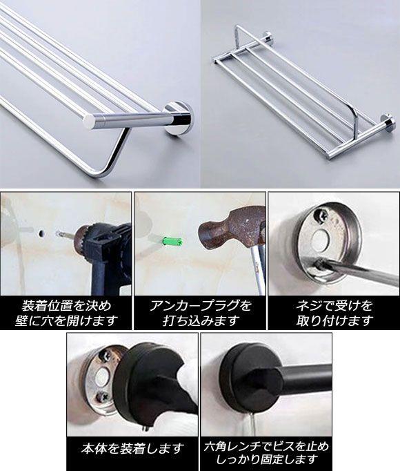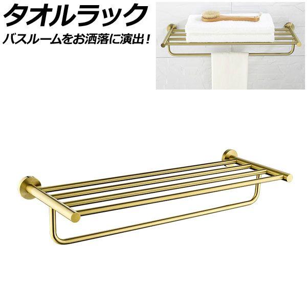 タオルラック ゴールド SUS304 ステンレス製 バスルームをお洒落に演出!付属プラグとネジでしっかり取り付け! AP-UJ0895-GD