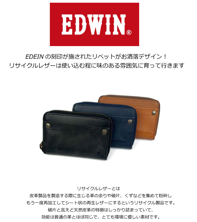 【ラッピング袋無料】メンズ 小銭入れ EDWIN エドウィン リサイクルレザー ラウンドファスナーコインケース 0510636 メンズ カード収納 革 おしゃれ ブランド コインケース ファスナー小銭入れ 男性 女性 カード入れ 誕生日プレゼント クリスマスプレゼント コンパクト