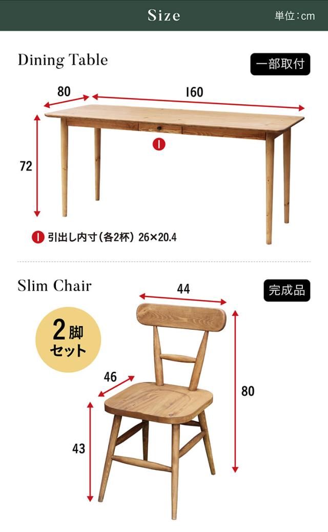 チェア:W44 x D46 x H80 x SH43cm