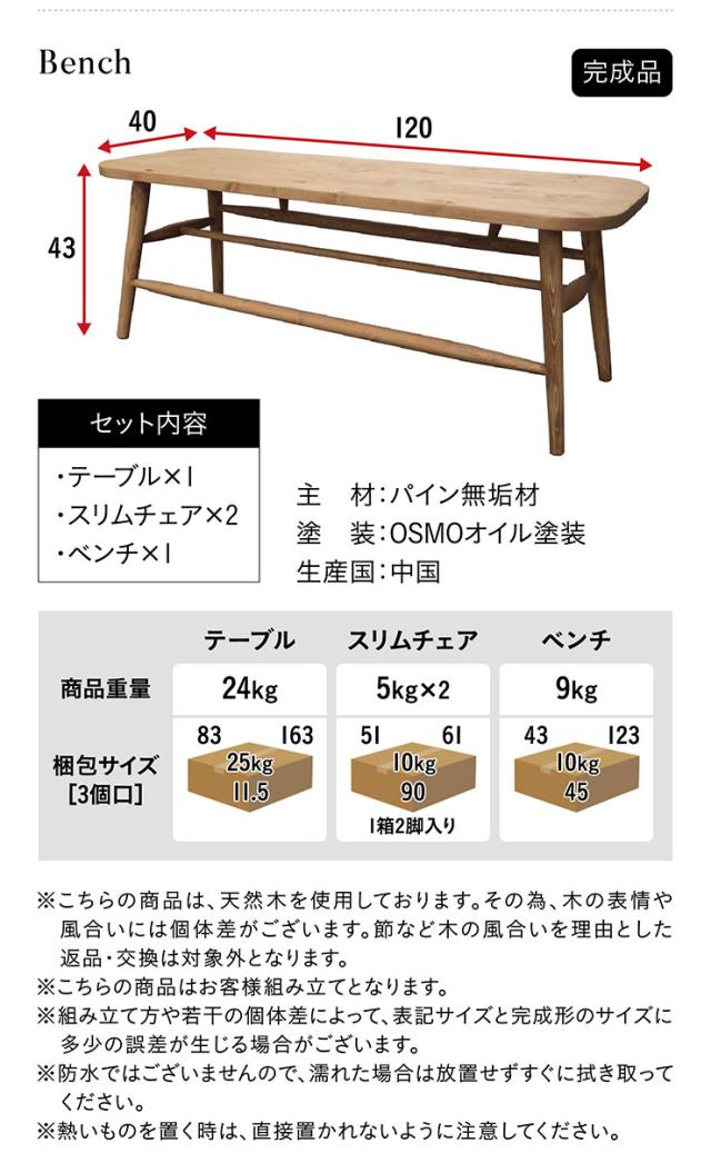 ベンチ:W120 x D40 x H43cm