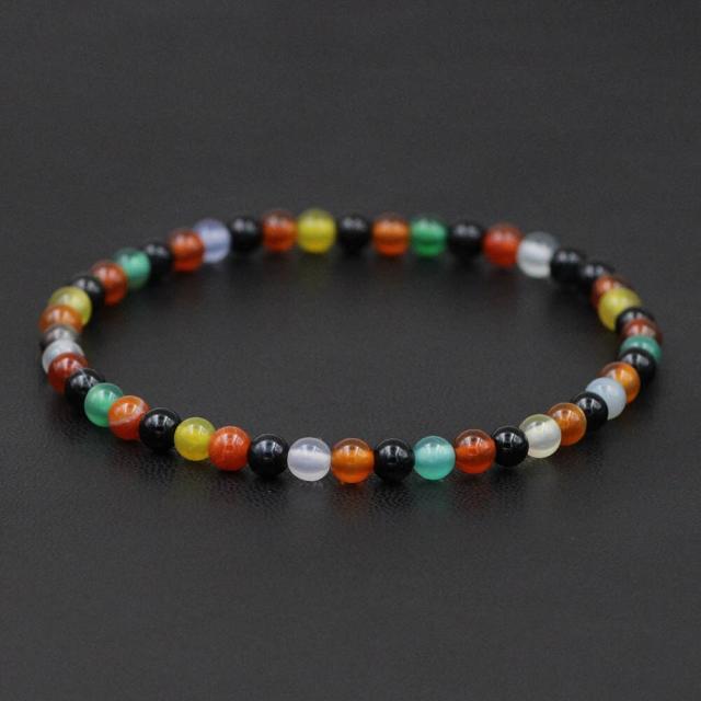 天然石のカラフルなカルセドニーの4mmから5mmの大きさの丸いストーンをつなげた数珠のようなブレスレット。綺麗なカルセドニーが印象的なヒーリングストーンブレスレット。人気のパワーストーンです。