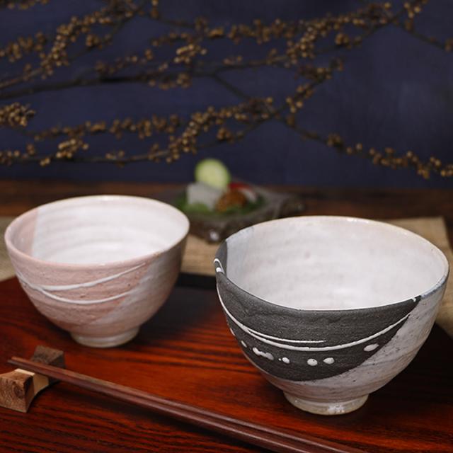 信楽焼 ペア飯碗 夫婦茶碗 信楽焼 結婚祝い 食器 おしゃれ 茶碗 ご飯茶碗 陶器 器 うつわ 飯茶碗 茶漬け碗 和食器 どんぶり 丼ぶり 潮騒(ブラック・ピンク)飯碗ペアセット w410-01_02