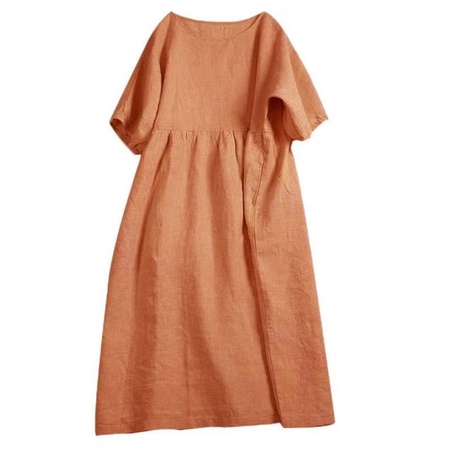 森ガールワンピース 大きサイズ 半袖 ワンピース 綿 ロングワンピース ゆったり 体型カバー ロング丈 送料無料