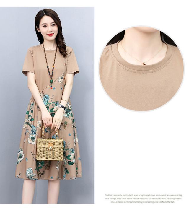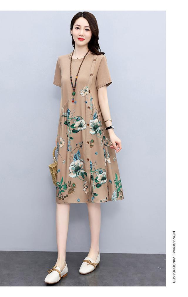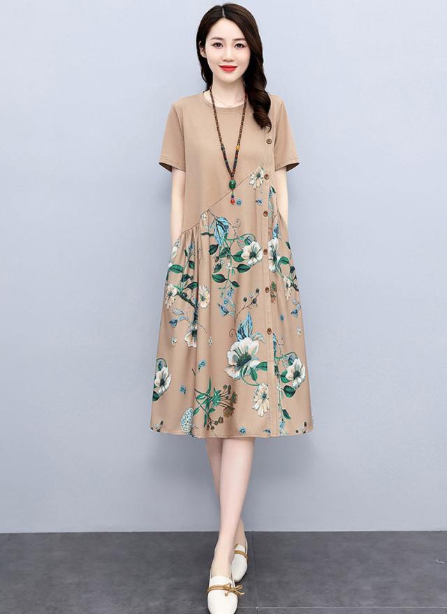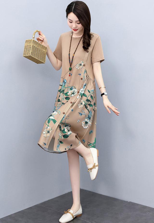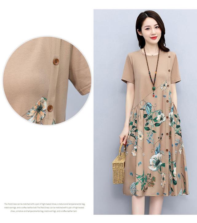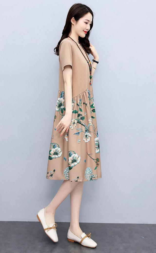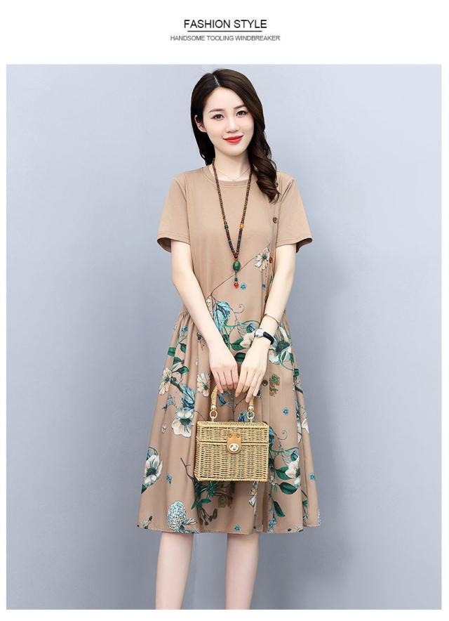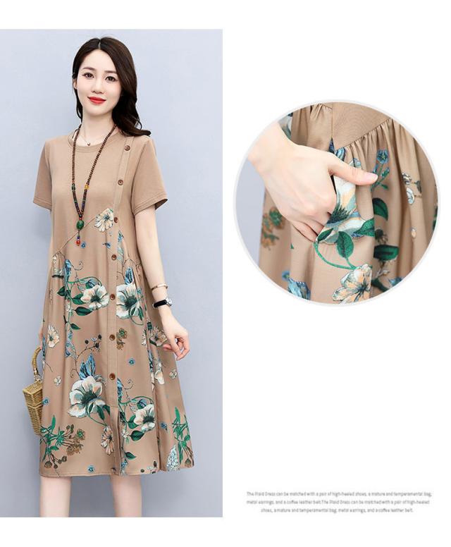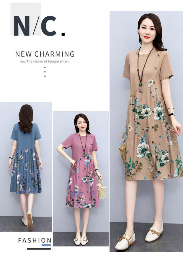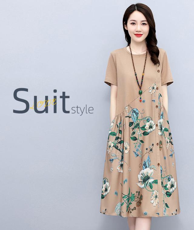 送料無料 ワンピース 半袖 ミディアム丈 ワンピ 花柄 斜め切替え ティアードスカート 膝丈 花柄 レトロ ワンピース ロングワンピース カジュアル ガーリー