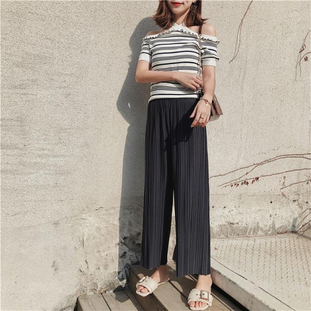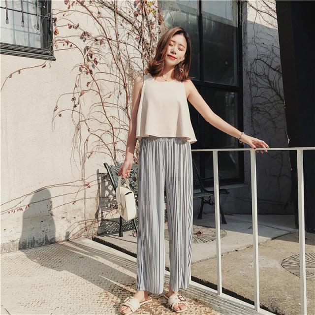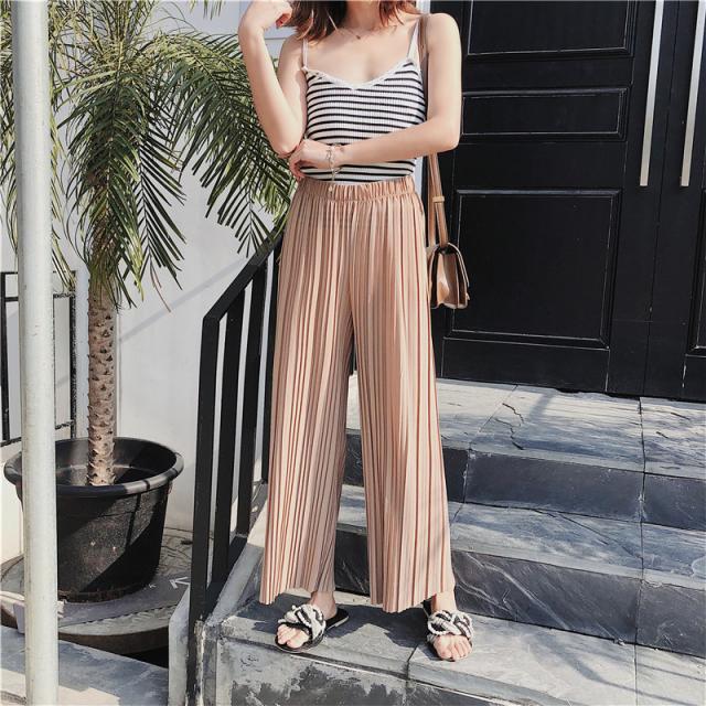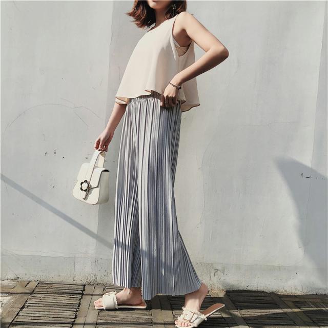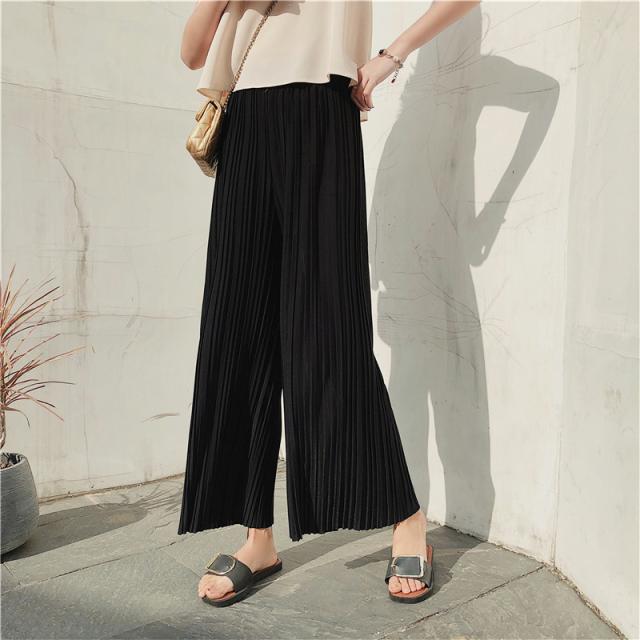 ワイドパンツ レディース プリーツ イージーパンツ リラックス 大きいサイズ フレア 九分丈 春夏 体型カバー