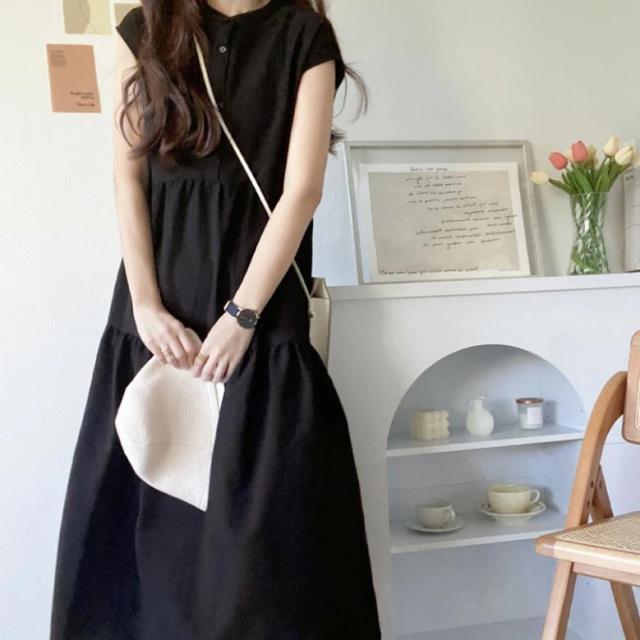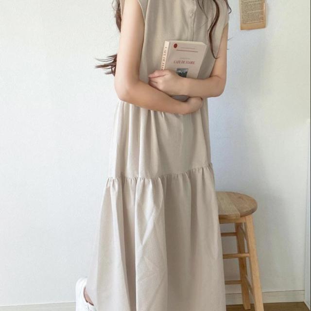 ワンピース レディース シャツワンピース バックリボン ティアード ストライプ 無地 フレンチスリーブ ロング