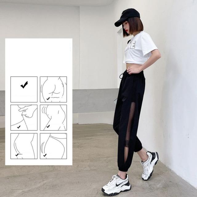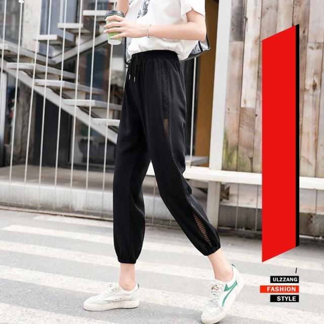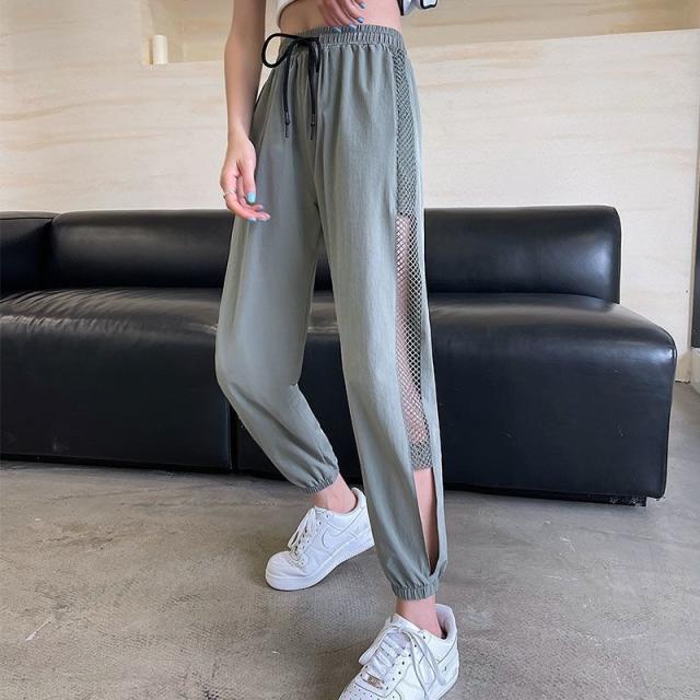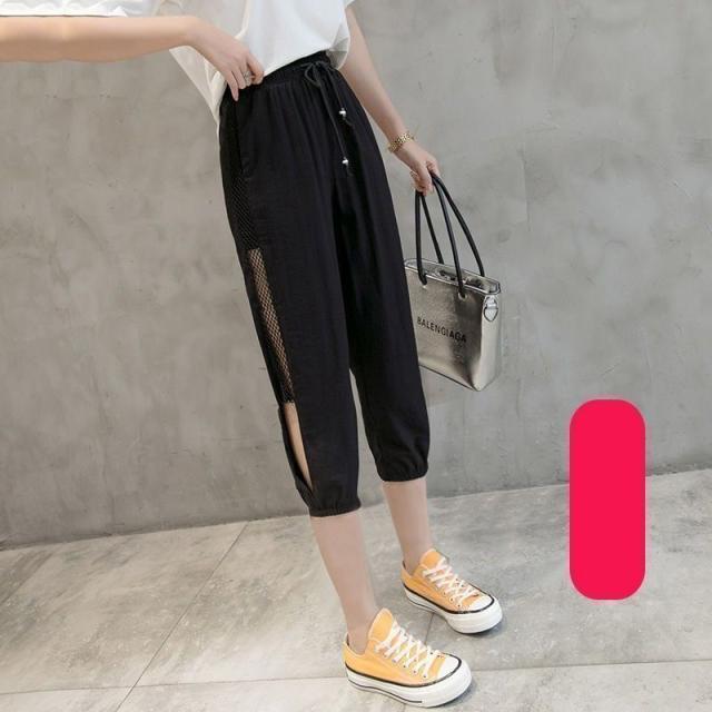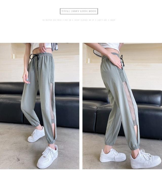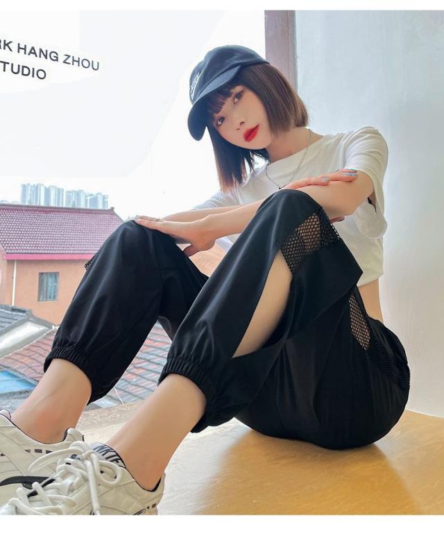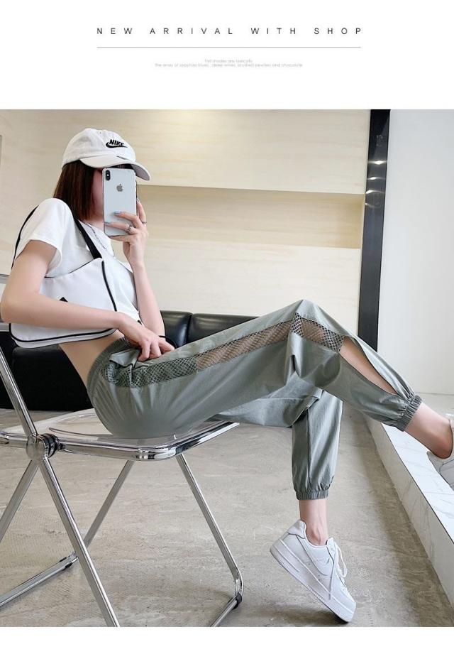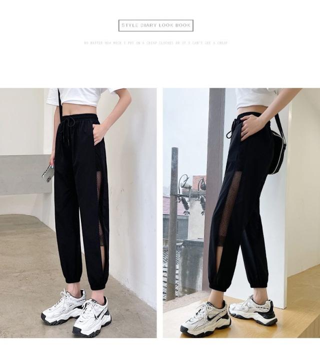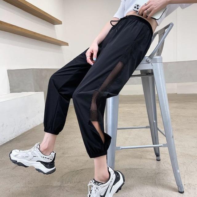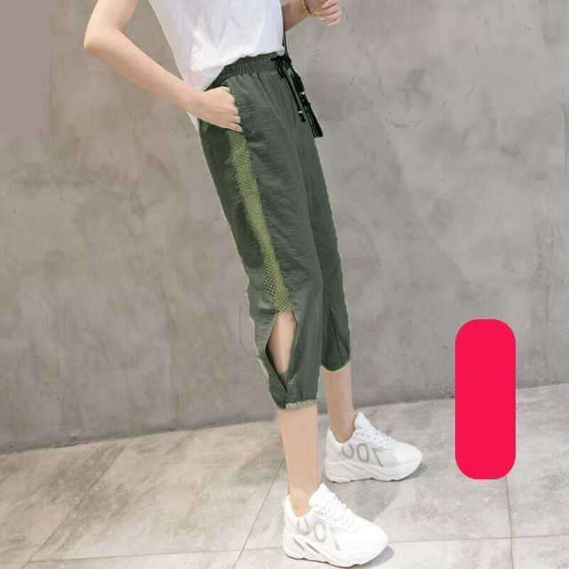 サイドメッシュ サルエルパンツ レディース 接触冷感 冷感パンツ イージーパンツ ジョガーパンツ 九分丈パンツ スリム 大きいサイズ