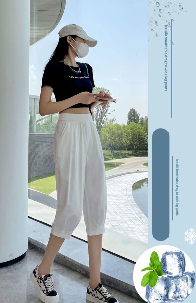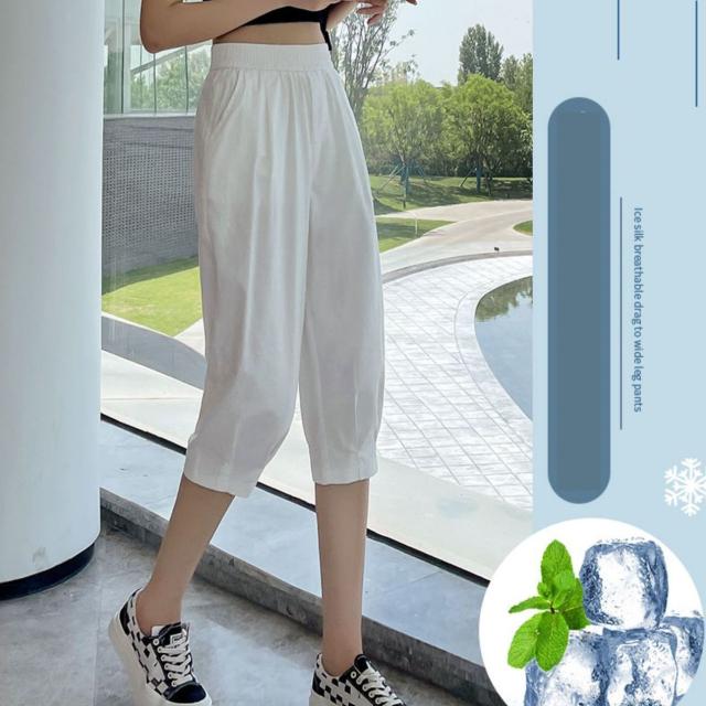 クロップドパンツ レディース サルエルパンツ 七分パンツ カジュアルパンツ イージーパンツ アイスシルクパンツ 夏 スリム