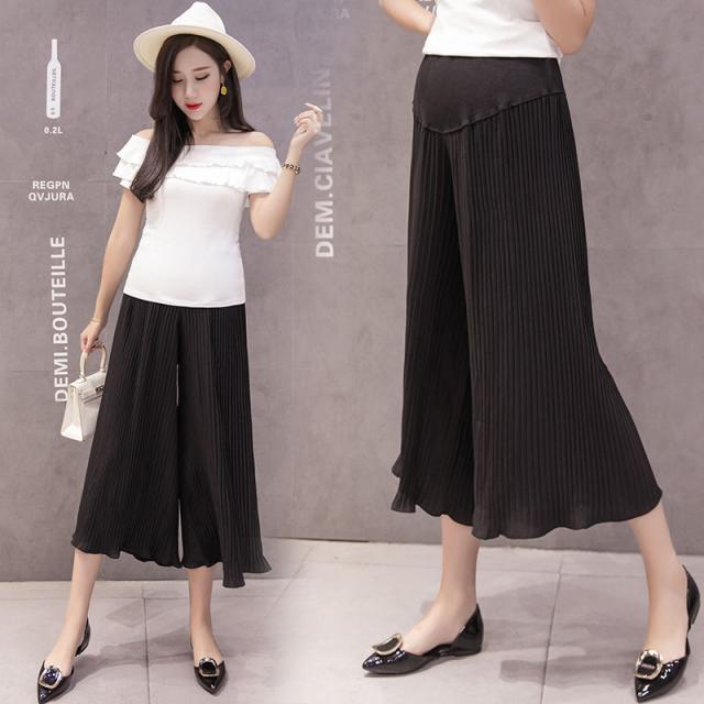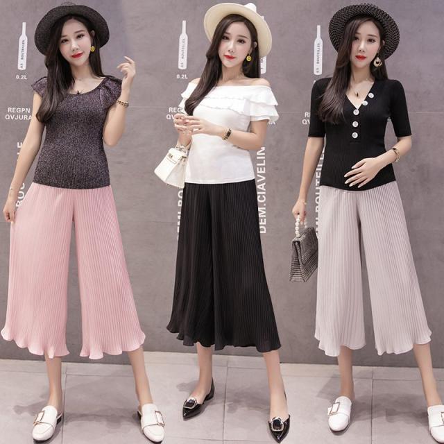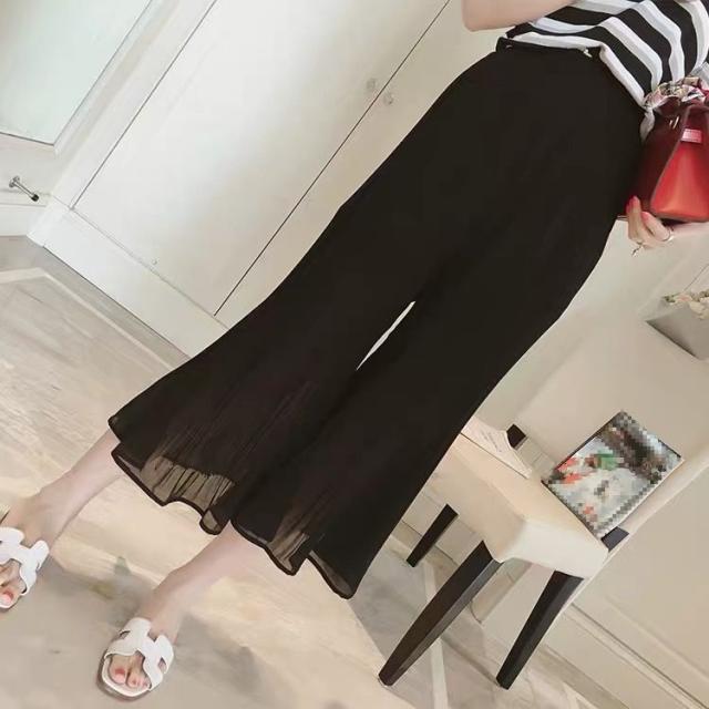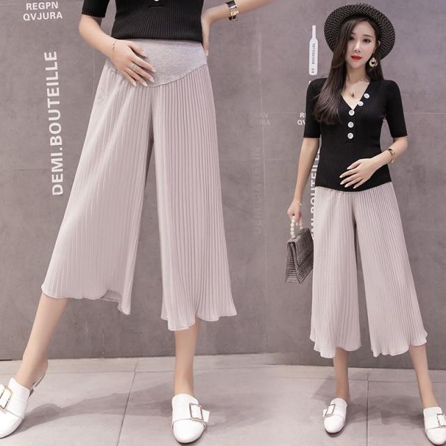 フレアパンツ 夏 マタニティパンツ ワイドパンツ 七分パンツ 妊婦服 シフォンパンツ プリーツパンツ 春 夏 産前 産後 体型カバー