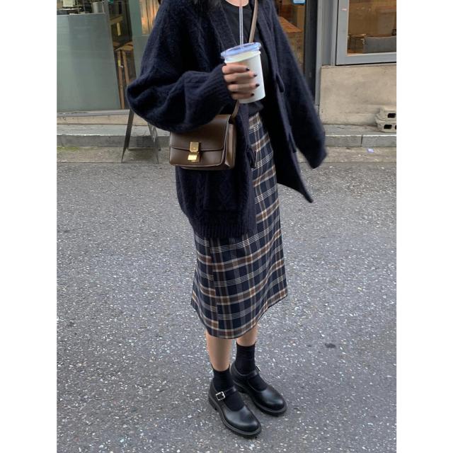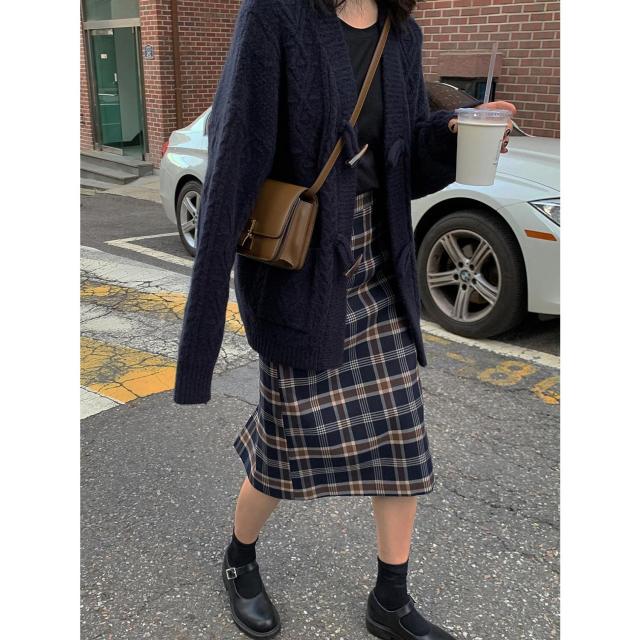 タイトスカート ナロースカート レディース ロング ボトムス チェック柄 スリット aライン 低身長 秋冬 カジュアル シンプル 韓国
