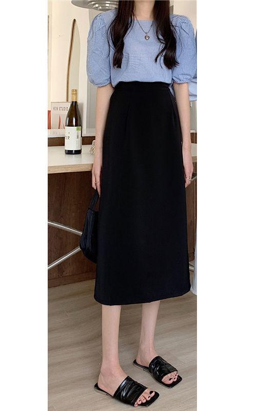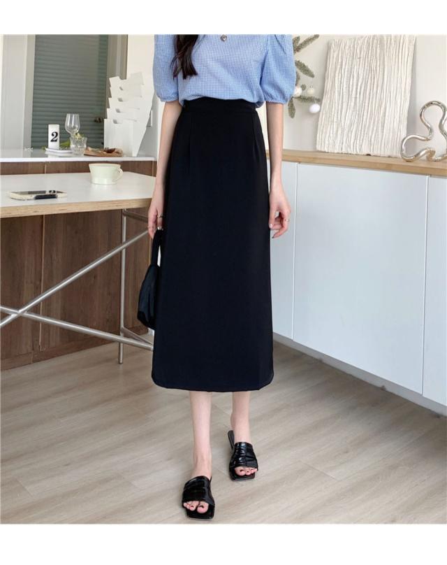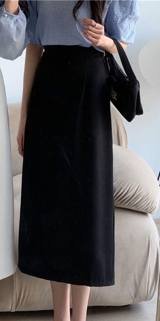 タイトスカート ナロースカート レディース ロング丈 ウエストゴム ハイウエスト 低身長 aライン 秋冬 着やせ カジュアル シンプル 韓国