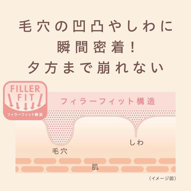 ●「フィラーフィット構造」を採用。毛穴の凸凹やしわに素早く入り込み、瞬間密着!崩れない!