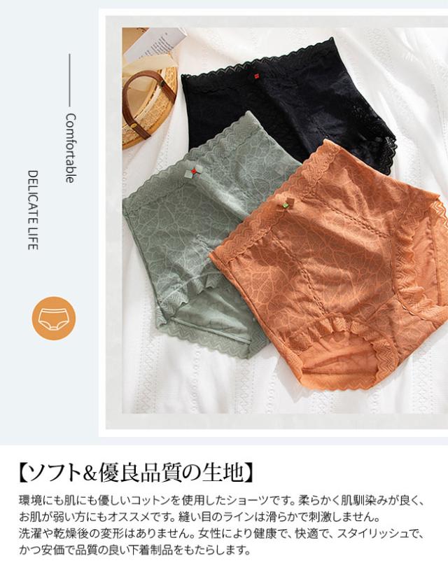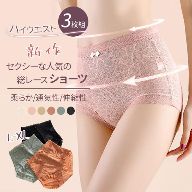 【即納 特別価格】3枚組 ショーツ レディース ハイウエストショーツ 下着パンツ 深め 総レース セクシー お腹まで包む コットン 下着 深履き 女性用 美尻ショーツ 柔らか 通気性 伸縮性