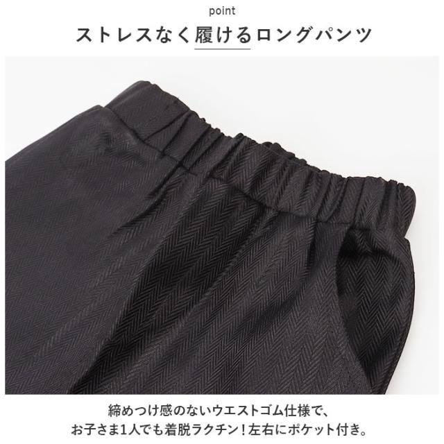 | 商品説明 | ・コーデに悩むことなく、おしゃれにキマる!キッズ用(男の子)フォーマル4点セットが新登場。 【うれしい4点セット】 ・ジャケット、ベスト、ロングパンツ、ネクタイの4点セット。大人顔負けのかっこいいスタイリングが完成☆ 【シングルジャケット】 ・フロントボタンが1列に並んだデザイン。ソフトな肩パッド入りで、美しいシルエットをキープ。左右にはポケットを配置。(※胸ポケットとチーフは飾りです。) 【こなれ感がアップするベスト】 ・よりスタイリッシュな雰囲気を演出するアイテム。ジャケットを脱いでもおしゃれ☆(※ポケットは飾りです。) 【ストレスなく履けるロングパンツ】 ・締めつけ感のないウエストゴム仕様で、お子さま1人でも着脱ラクチン!左右にポケット付き。 【小物使いも完璧】 ・形が作られたネクタイは、首周りにゴムで簡単装着。ネクタイを結ぶ手間がなく安心!胸元の飾りチーフとともに、スーツスタイルのアクセントに。 【色々なシーンで活躍】 ・お子さまが着用しやすい、柔らかな生地感。誕生日や七五三、結婚式などのイベント、入学・卒業式に! |