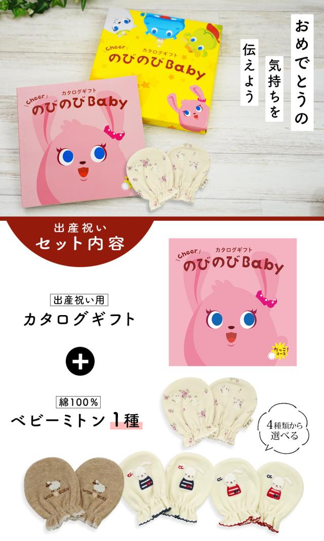 出産祝い カタログギフト のびのび Baby だっこ!コース& ミトン セット<新作商品>【ベビーミトン 4種から選べる 日本製 御祝 御祝い お祝い 男の子 女の子 赤ちゃん ベビー 育児グッズ 友達 人気 ギフトセット 手袋 ビセラ シャディ】