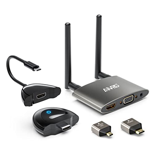 【無線hdmi飛ばす】配線だけでスマホ、タブレット、ノートPCの画面をモニターやテレビに映すことができるAIMIBO hdmiワイヤレス送受信機セットです。超簡単!bluetooth、Wifi設定一切不要、挿すだけで画面が見れちゃう。