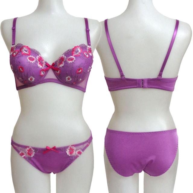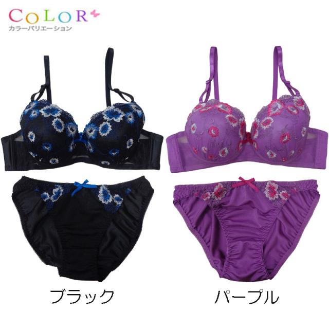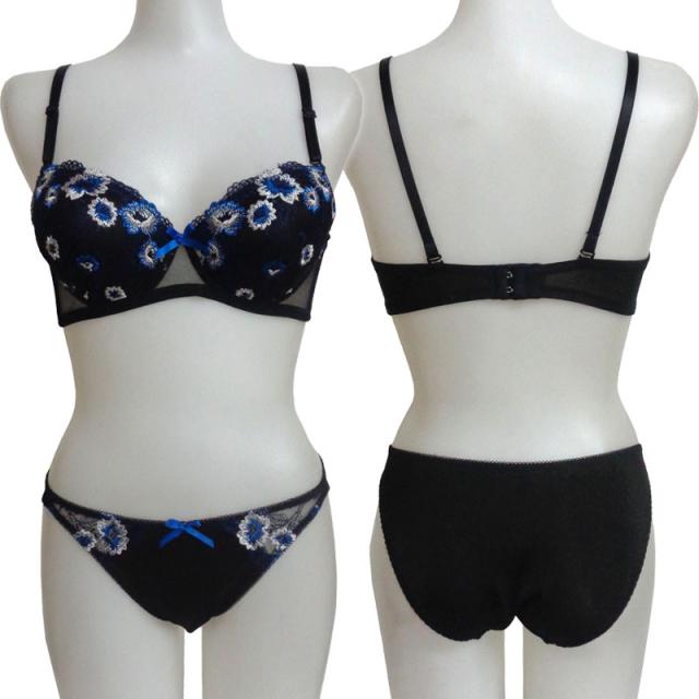 小花柄刺繍のフェミニンなブラジャー&ショーツ