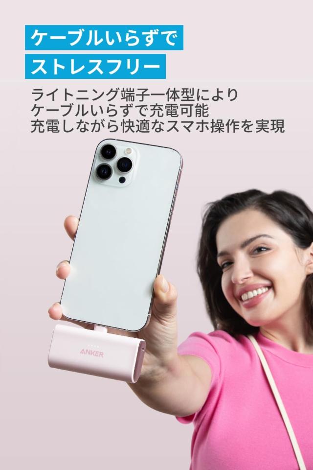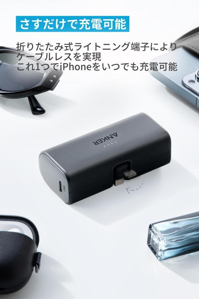 Anker Nano Power Bank (12W, Built-In Lightning Connector) (モバイルバッテリー 5000mAh 小型コンパクト)【MFi認証済/PowerIQ搭載 /ライトニング端子一体型】 iPhone 14 / 13 / 12 シリーズ