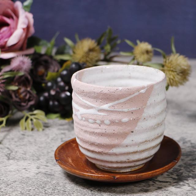 信楽焼 湯呑み 200ml(満水時) 陶器 おしゃれ 保温 かわいい 和食器 日本製 汲出し カップ 食器 茶器 やきもの コップ 焼き物 器 潮騒(ピンク)湯呑 w414-06