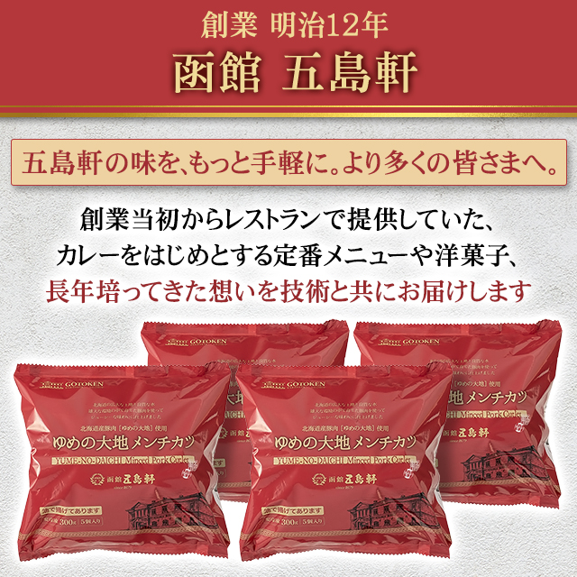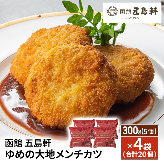送料込み 函館 五島軒 ゆめの大地メンチカツ 300g (5個)×4袋 (合計20個) 冷凍 惣菜 メンチカツ メンチ 冷凍食品