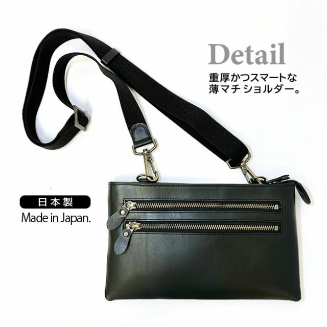 | シンプルなデザインで、かさばらないので街持ちや旅先での散策になど様々なシーンで活躍! どんなコーディネートでもオシャレに持てる重厚かつスマートな薄マチ ショルダーバッグ。 手触りが良い上質な牛革使用。ショルダーベルトを使わずにミニセカンドバッグとしてもお洒落。 | |||