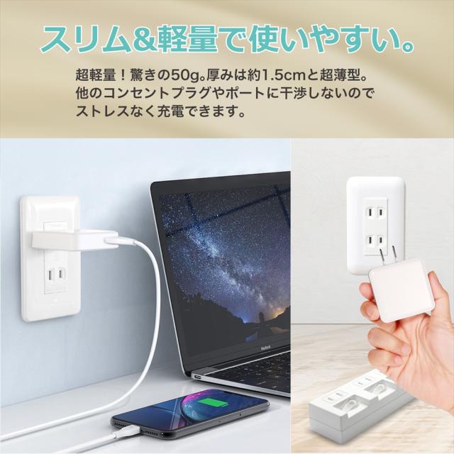 【GaN採用】PD急速充電器 ACアダプター【1ポート】