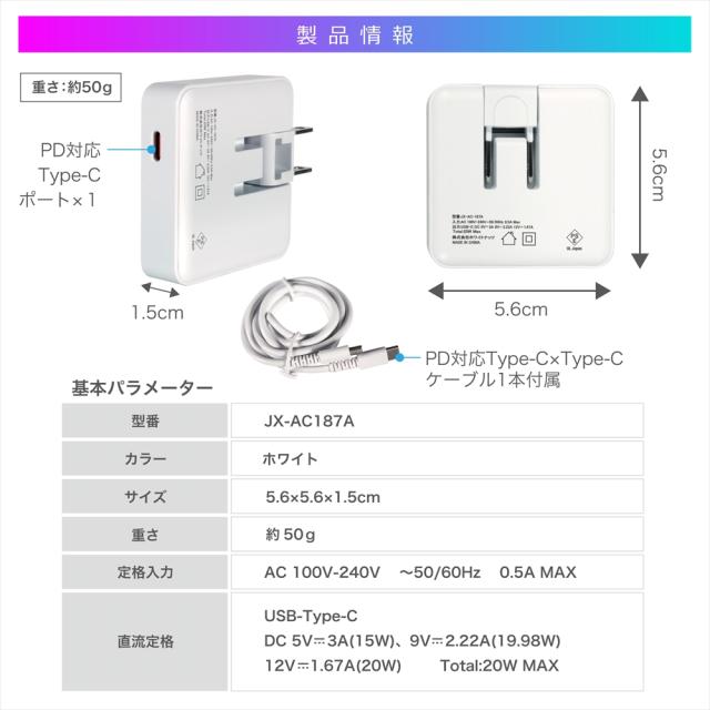 iPhone17 急速充電器 スマホ 充電器 PD対応 20W ACアダプター 充電器 GaN 急速充電 Type-C USB-C PD3.0 PSE認証 ケーブル付き 20w 軽量 薄型 タイプC 高速充電 折りたたみ式 タブレット Galaxy Xperia Google Pixel AQUOS OPPO Xiomi iPad Power Delivery 白