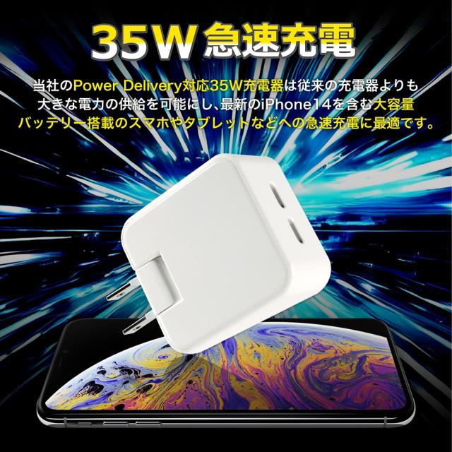 iPhone17 急速充電器 iPhone 充電器 スマホ 充電器 PD対応 35W GaN ACアダプター 急速充電 Type-C USB-C PD3.0 Andriod 2ポート PSE認証 白 Google Pixel OPPO AQUOS 軽量 薄型 タイプC 高速充電 折りたたみ式 タブレット Galaxy Xperia iPad Power Delivery