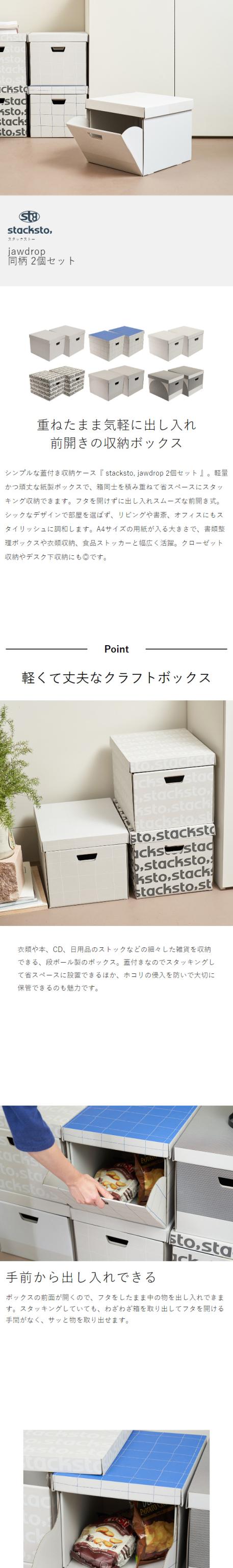 [ stacksto, jawdrop 2個セット ]スタックストー ジョードロップ 2個組 収納ケース 蓋付き 収納ボックス 紙製 おしゃれ 段ボール フタ付き 前開き 収納 箱 かわいい クラフトボックス リサイクル紙 日本製 食品ストック おもちゃ箱 オムツ 衣類 衣装ケース【送料無料】