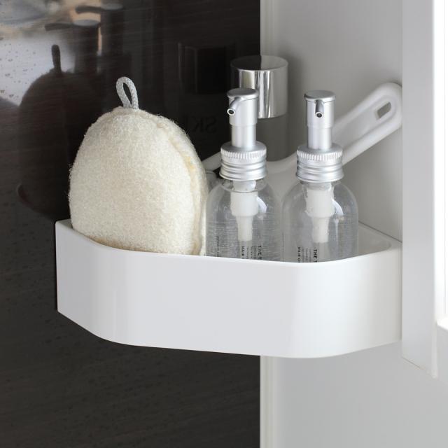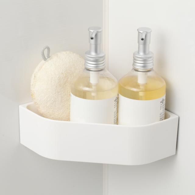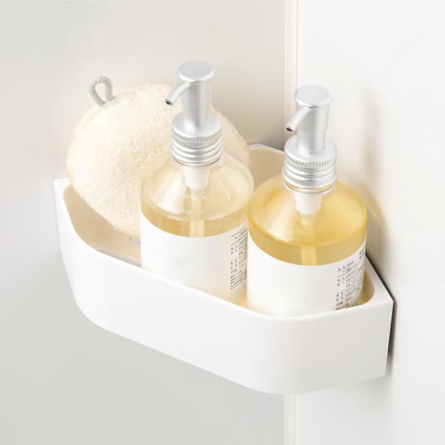 磁石の付く壁面の、お好きな場所に取り付けることができるラックです。洗練されたシンプルなデザインは、まるで備え付けのように空間に馴染みます。バスルームの角を利用できるコーナータイプなので、省スペースで収納できます。