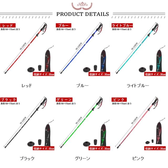 トレッキングポール 登山ストック トレッキングステッキ 超軽量アルミ製 高強度 折り畳み 収納ケース付き アウトドア